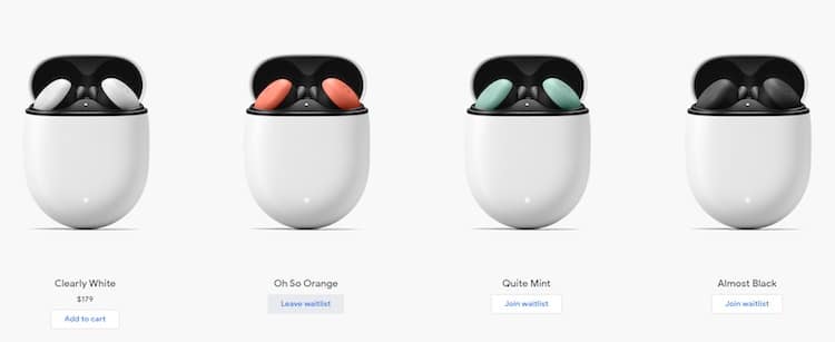 Pixel Buds 2 colors: white, orange, green, black in stock