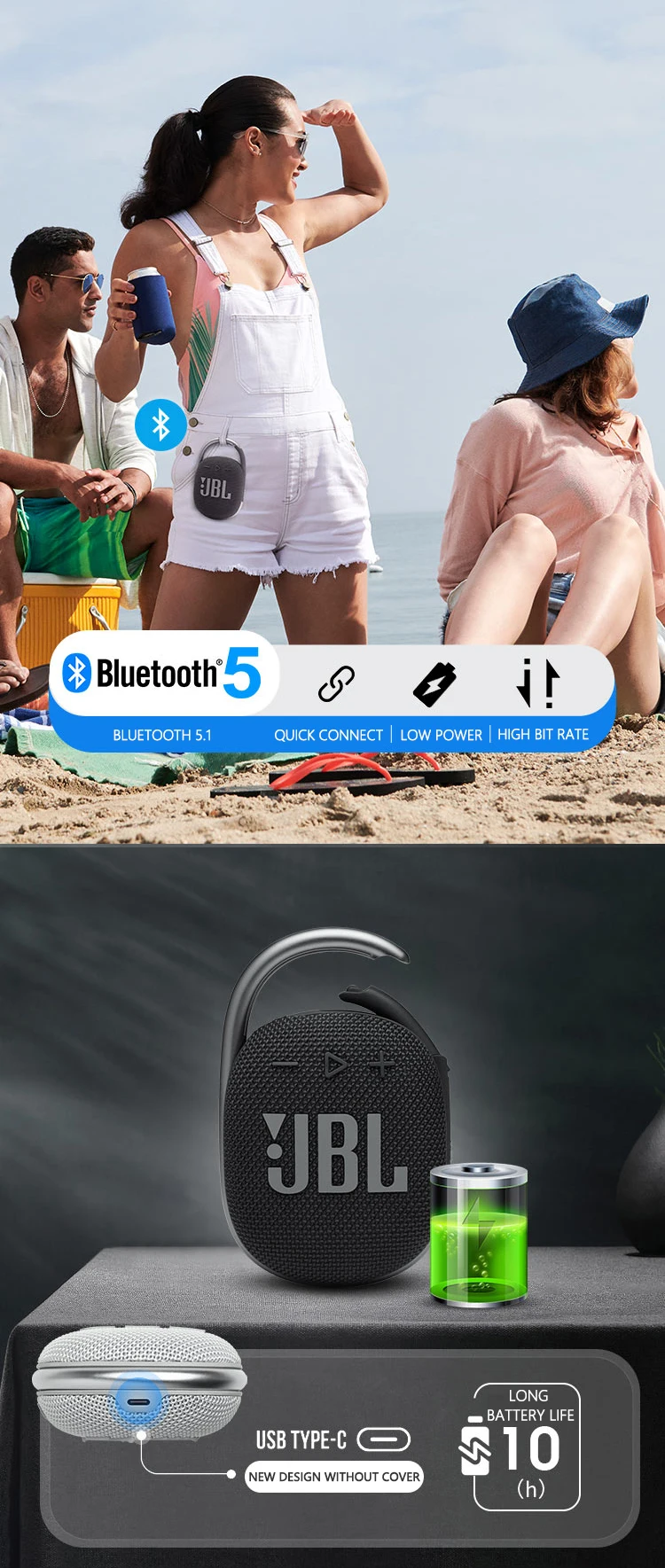 JBL Clip 4 Wireless Bluetooth 5.1 Mini Speakers Clip4 Portable IPX67 Waterproof Outdoor Bass Speakers with Hook 10 Hours Battery 4