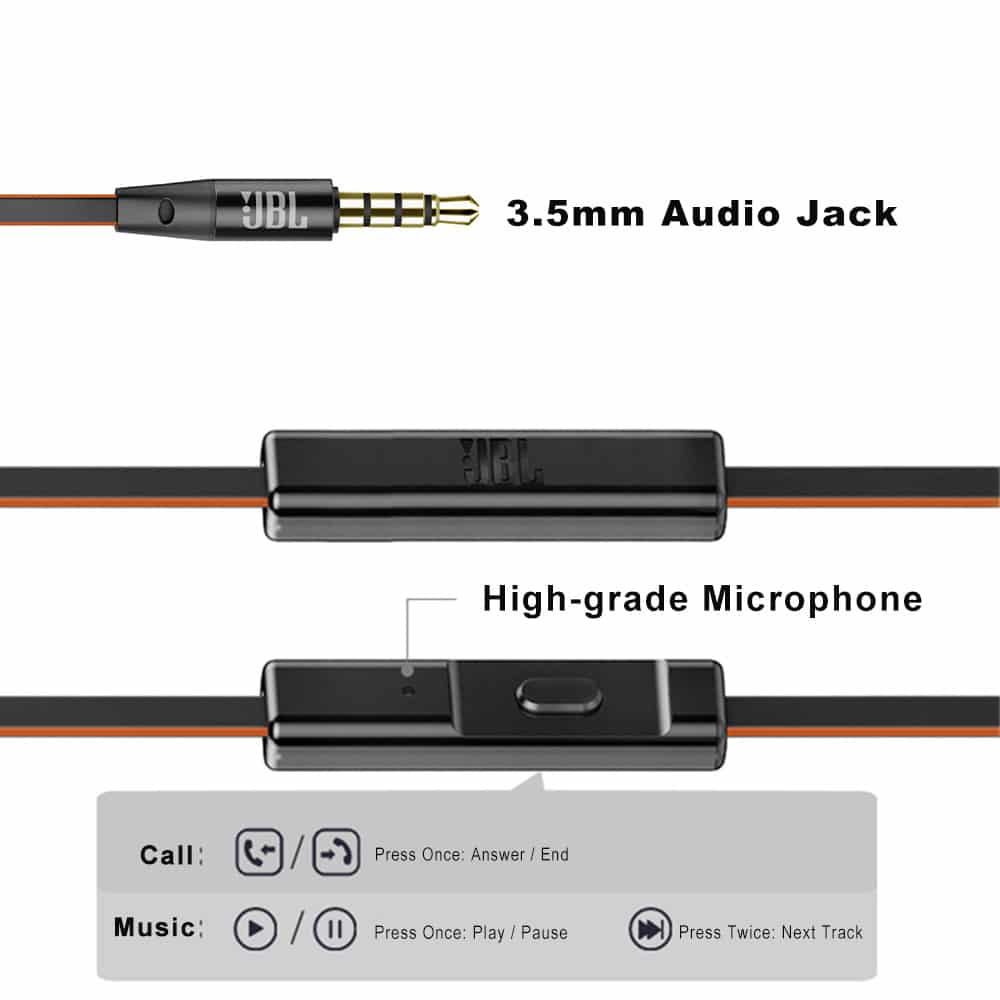 JBL T180A In-Ear Wired Headphones 3.5mm Stereo Pure Bass Sound Earphones Sports Headphones Support Android / IOS Gaming Headset