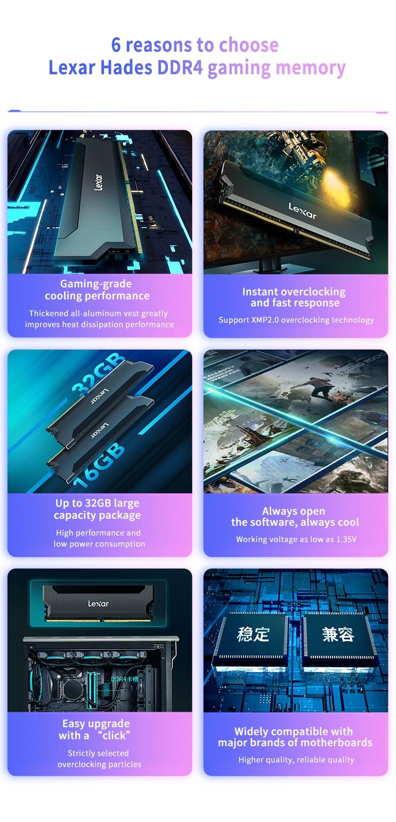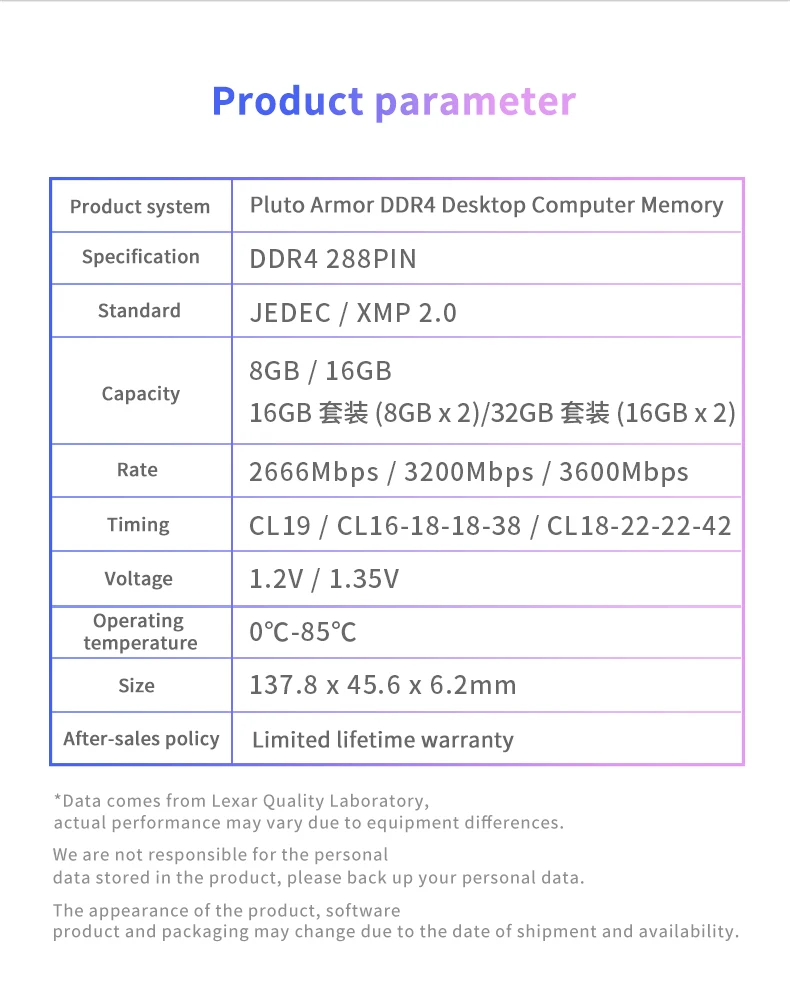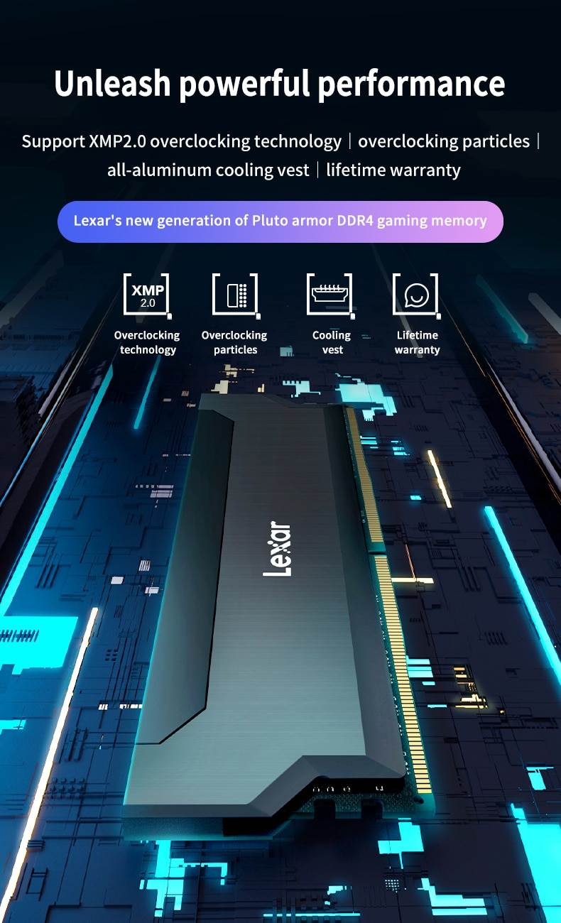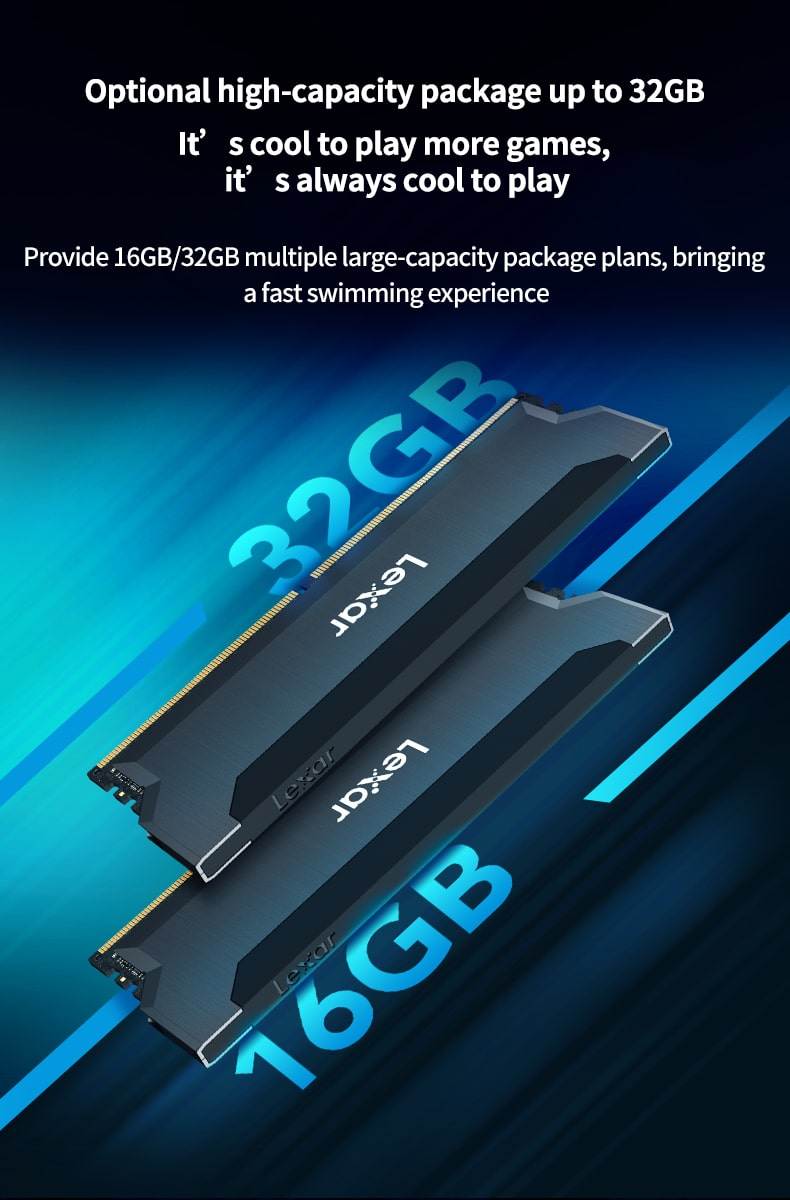 Level up your gaming experience with the Lexar Hades OC DDR4 3600/3200 overclocked memory.