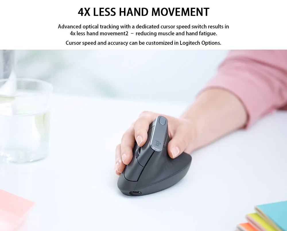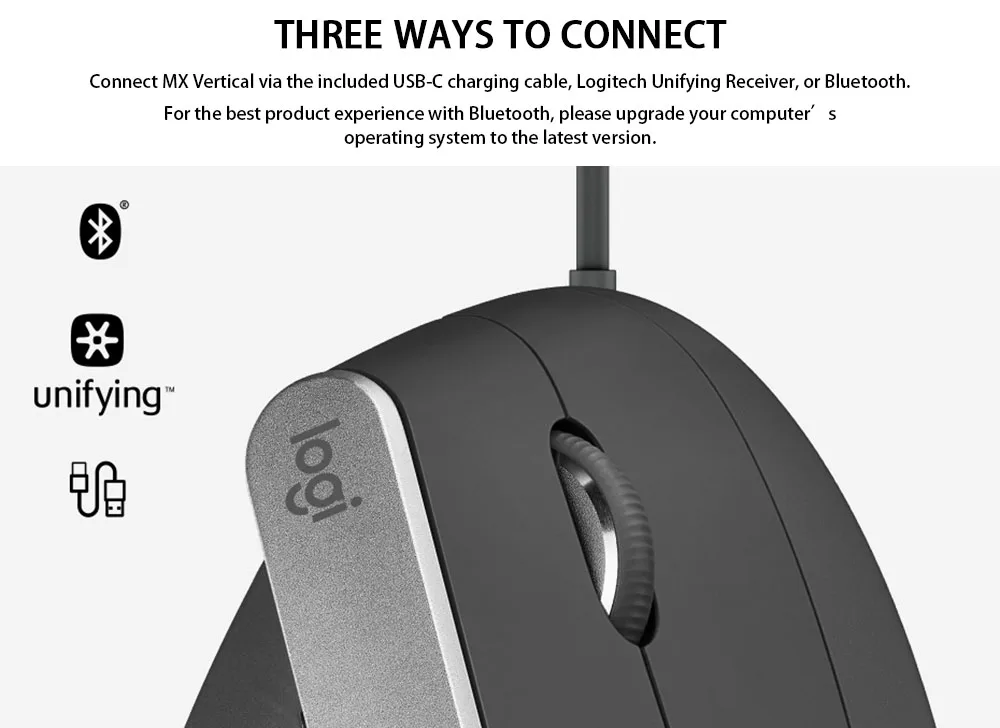 Logitech MX vertical wireless bluetooth mouse ergonomic 2.4GHz with USB universal receiver, 4000 DPI laptop/PC/Mac/iPad 6