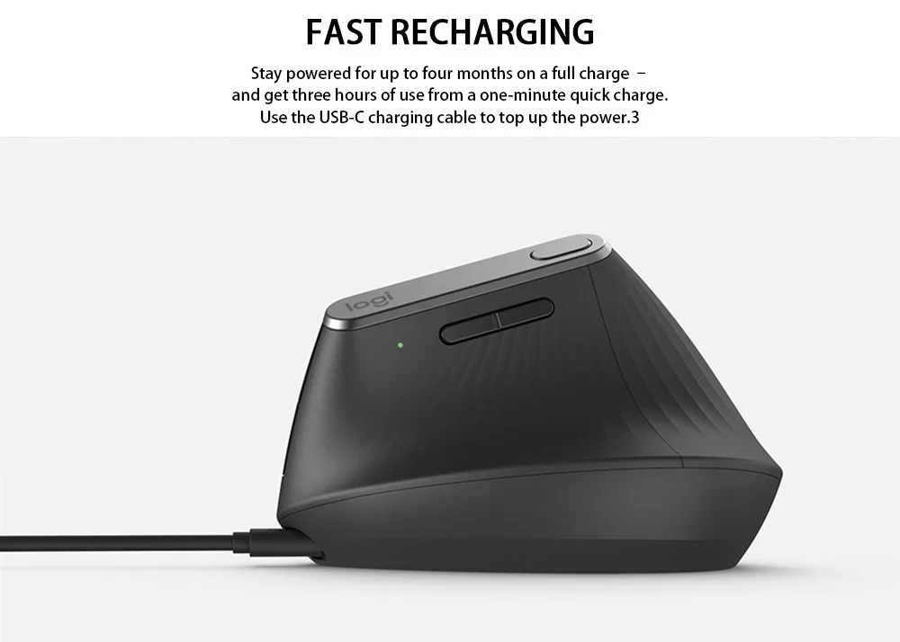 Logitech MX vertical wireless bluetooth mouse ergonomic 2.4GHz with USB universal receiver, 4000 DPI laptop/PC/Mac/iPad 1