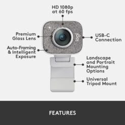 Logitech StreamCam Full HD Webcam – 1080p 60fps USB-C White for Streaming