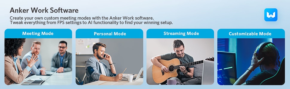 With the Anker Work app, you can choose from 4 meeting modes to tailor PowerConf C300 to your exact needs. You can even customize your own settings.