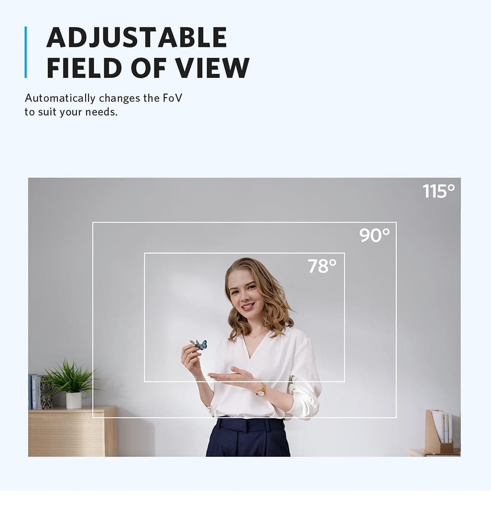 Go from up close and personal to fitting everyone in frame all without messing around with settings thanks to PowerConf C300’s automatically adjustable field of view.