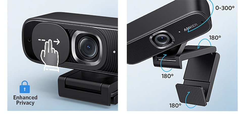 With 4 angles of adjustment, you can place PowerConf C300 almost anywhere you want. You can even mount it to a tripod for complete control over your camera setup.
