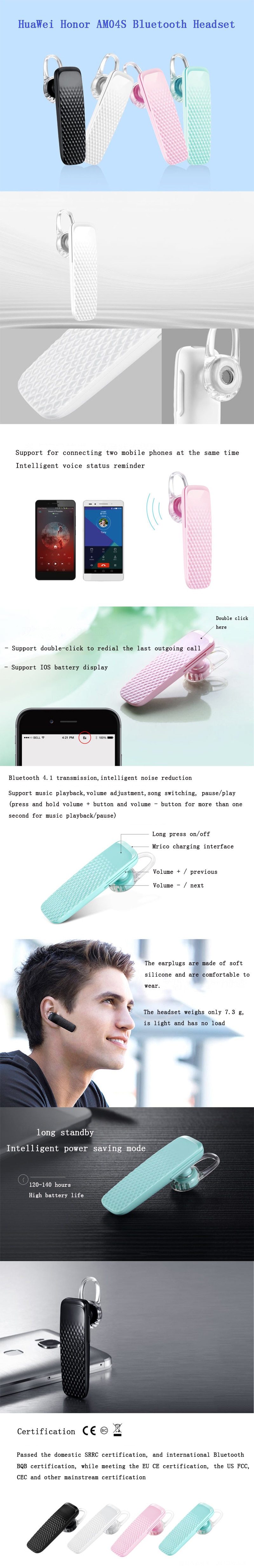 Huawei Honor AM04S Wireless Headset Bluetooth 4.1 Intelligent Noise Reduction With Mic Handfree Business for V9 mate9/10 P10 P20 1