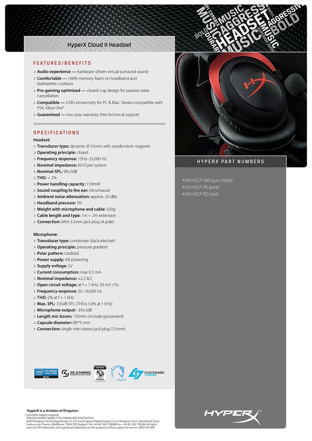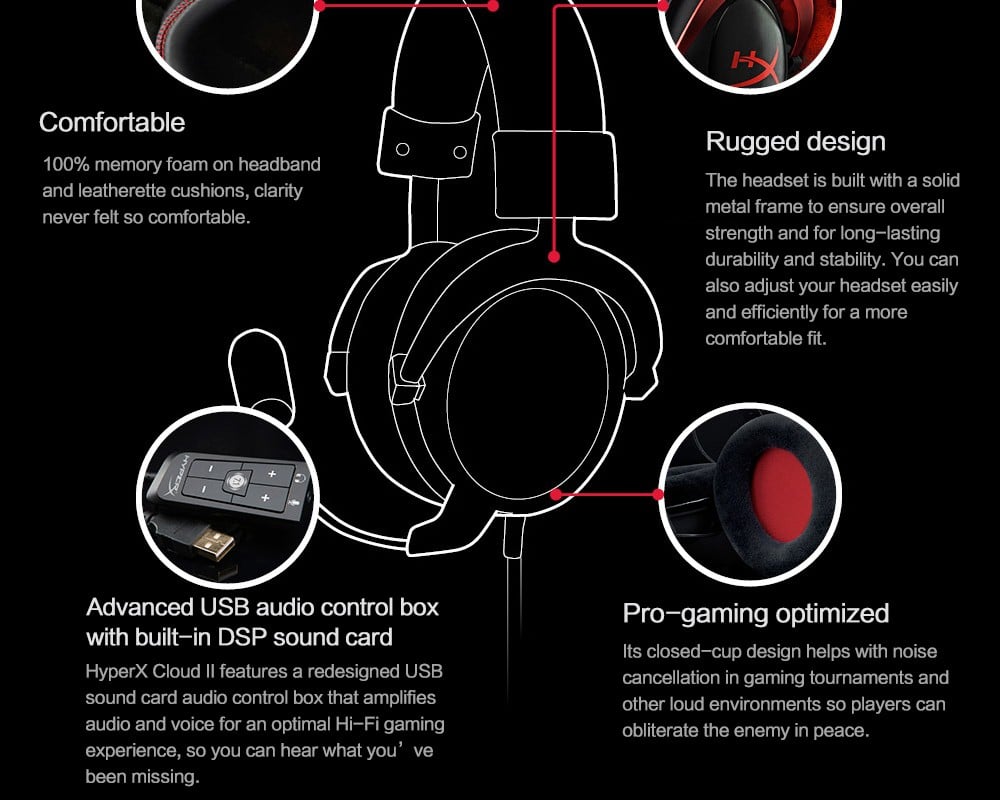- Box contents: HyperX Cloud II Gaming Head Gun Metal