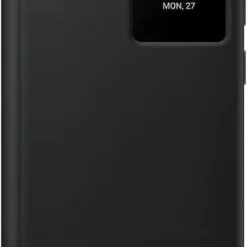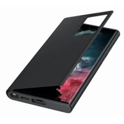 The Official Samsung Galaxy S24 Ultra Smart View Wallet Case – Black — Samsung’s own flip cover with a Smart View interactive window. Check notifications, answer calls and control music with a single tap on the closed cover without opening the case. Hidden card slot inside. Wireless charging compatible. Made with eco-conscious recycled materials. Designed exclusively for the Galaxy S24 Ultra.