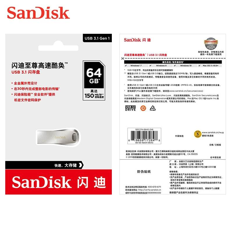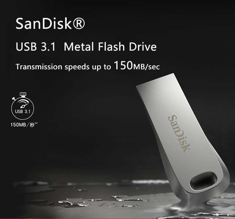 SanDisk Ultra Luxe 32GB,64GB,128GB,256GB USB Flash Drive USB 3.1 up to 150 MB/s, Silver
