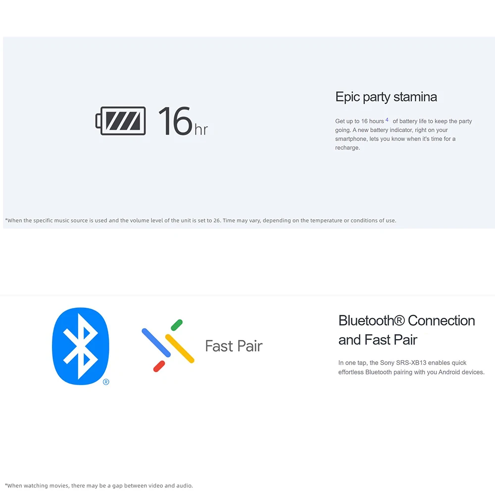 In addition to its impressive sound performance and durable design, the Sony SRS-XB13 Bluetooth Portable Speaker Coral Pink also offers long-lasting battery life. You can enjoy your music all day with up to 16 hours of playtime on a single charge. Plus, with its USB Type-C port, you can quickly recharge it when the battery runs low.
