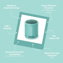 The Sony SRS-XB13 Bluetooth Portable Speaker Powder Blue combines portability with a soft hue. Its compact and lightweight design makes it easy to take your music wherever you go, while its powder blue colour is subtle and stylish. Plus, with its powerful sound performance, you’ll enjoy your music with deep bass and clear vocals.